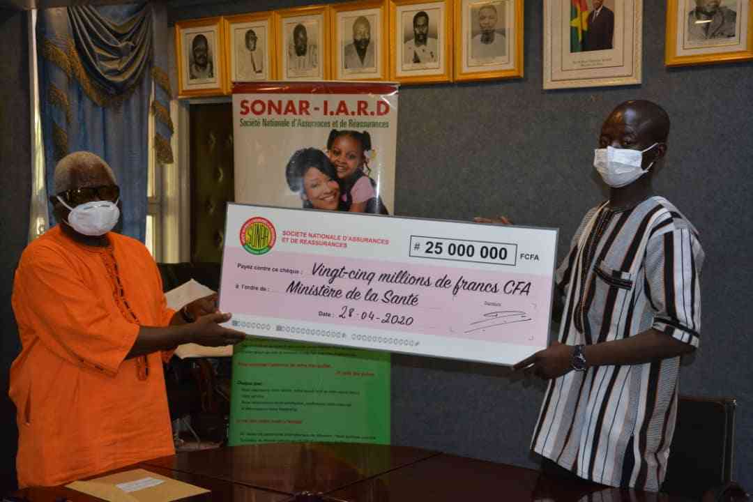 Pour exprimer sa solidarité dans le cadre de la lutte contre le COVID-19 au Burkina Faso, La société nationale d’assurances et de réassurances SONAR a fait, ce mardi 28 avril 2020 à Ouagadougou, un don de 25 millions de francs CFA au Ministère de la Santé. Ce geste vise à soutenir le gouvernement dans la lutte contre la maladie à Coronavirus.